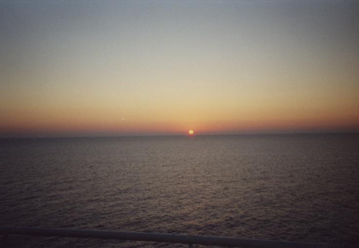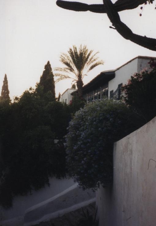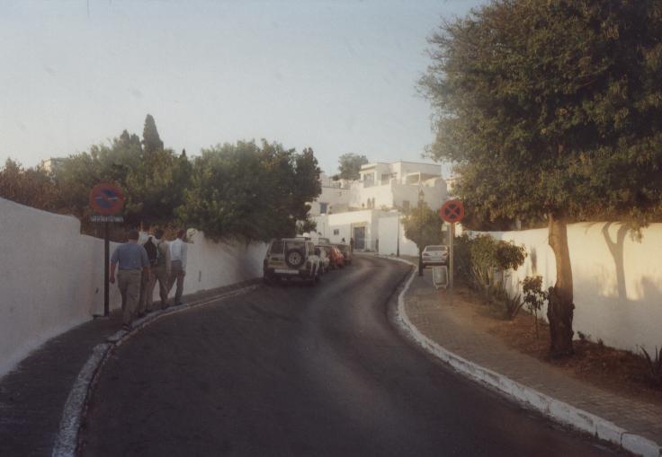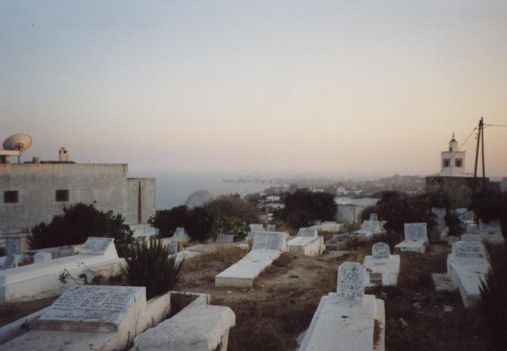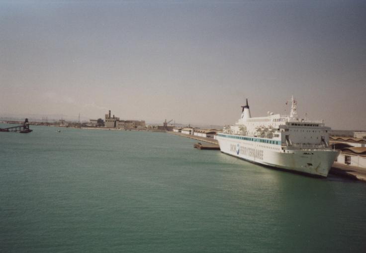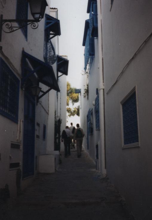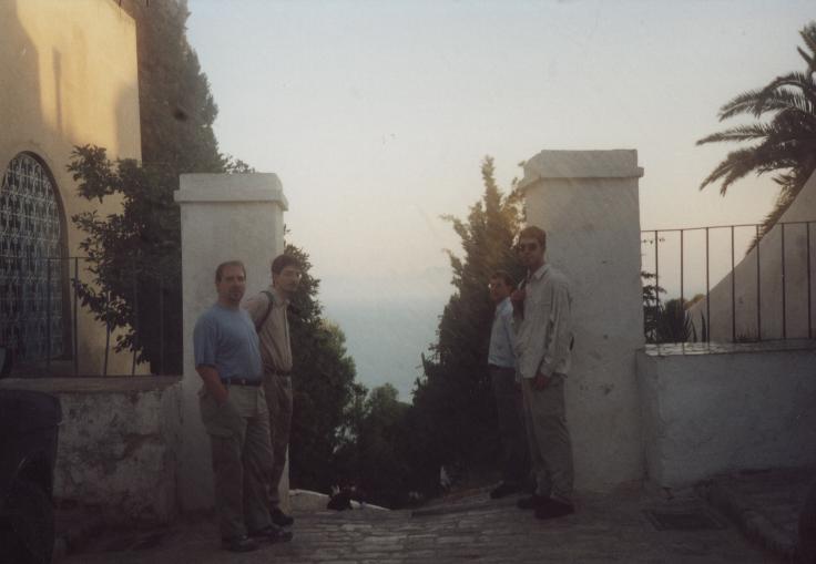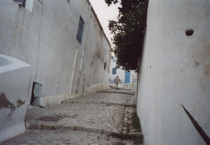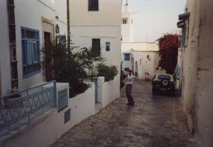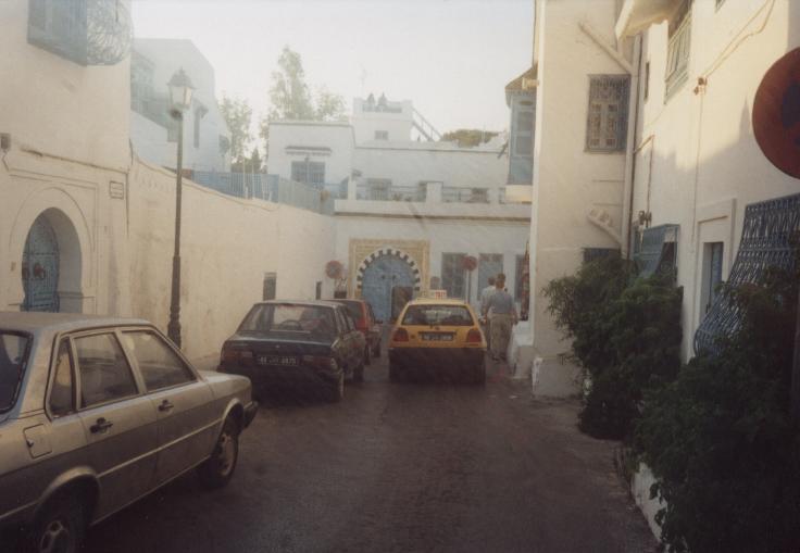 Schlechte, chaotische Übernachtung auf dem Boden, auf Liegesitzen auf dem Deck, in vollem Fernsehraum auf Pullmannsitzen, Moonraker, Stempeln gehen beim Zoll auf Fähre, 15:00 Ankunft der Fähre, um 16:00 Uhr betreten wir zum ersten Mal tunesischen Boden, Zoll, Siedler, ewige Schlangen, Mitarbeiters des Zoll, der behauptet, unsere Papiere seien unvollständig, verlangt "Geld für Chef"; Fahrt nach Sidi-Bou-Said: Künstlerstadt, touristisch stark erschlossen, weiße Häuser mit azurblauen Türen; lange Weiterfahrt mit fahrerischer Leistung von Tom (Fahrer) und Body (Navigator) in Tunis (Altstadt, Nacht und grobe Richtung). Suche nach einem geeigneten Parkplatz (in Industriegebiet, etc.), Melonen eingekauft
