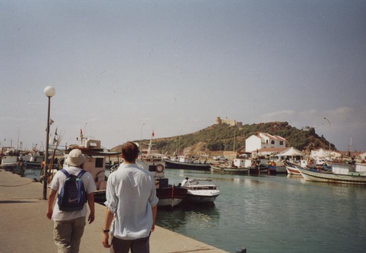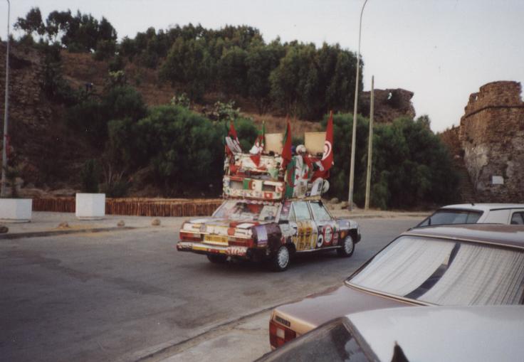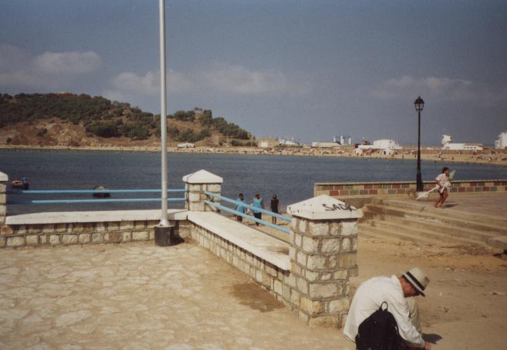 Fahrt auf kleiner Straße über Beja nach Tabarka, Besuch des Städtchens, der Felsen und Unterhaltung mit Hassan, dem Strandwächter (Duschen für 5 Denare, Melonen, sechs Denare Tageslohn), Bad im Meer, Spaghetti Carbonara, eine Birne und ein Apfel für Body, Wein eingekauft, abendliches Celtia (tunesisches Bier) mit Hassan, nächtlicher Besuch der Burg, Angetrunkene Italiener wollen uns mit dem Auto in eine Disco mitnehmen. Body am Strand geschlafen, arg zerstochen (vielleicht Sandflöhe?)